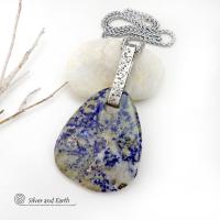 Blue Lapis Lazuli in Calcite Sterling Silver Pendant Necklace - One of a Kind Bold Modern Natural Gemstone Jewelry