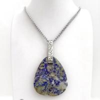 MEASUREMENTS: 3-1/4" in length (from top of sterling bail to bottom of stone) and approximately 1-3/4” at widest point. I created the bail out of solid sterling silver sheet; hand filed edges until meticulously smooth; then hammered it for an organic texture. It comes on a 20" stainless steel chain necklace with lobster claw closure. The chain can be worn with other pendants - so it's like getting 2 pieces of jewelry in one!