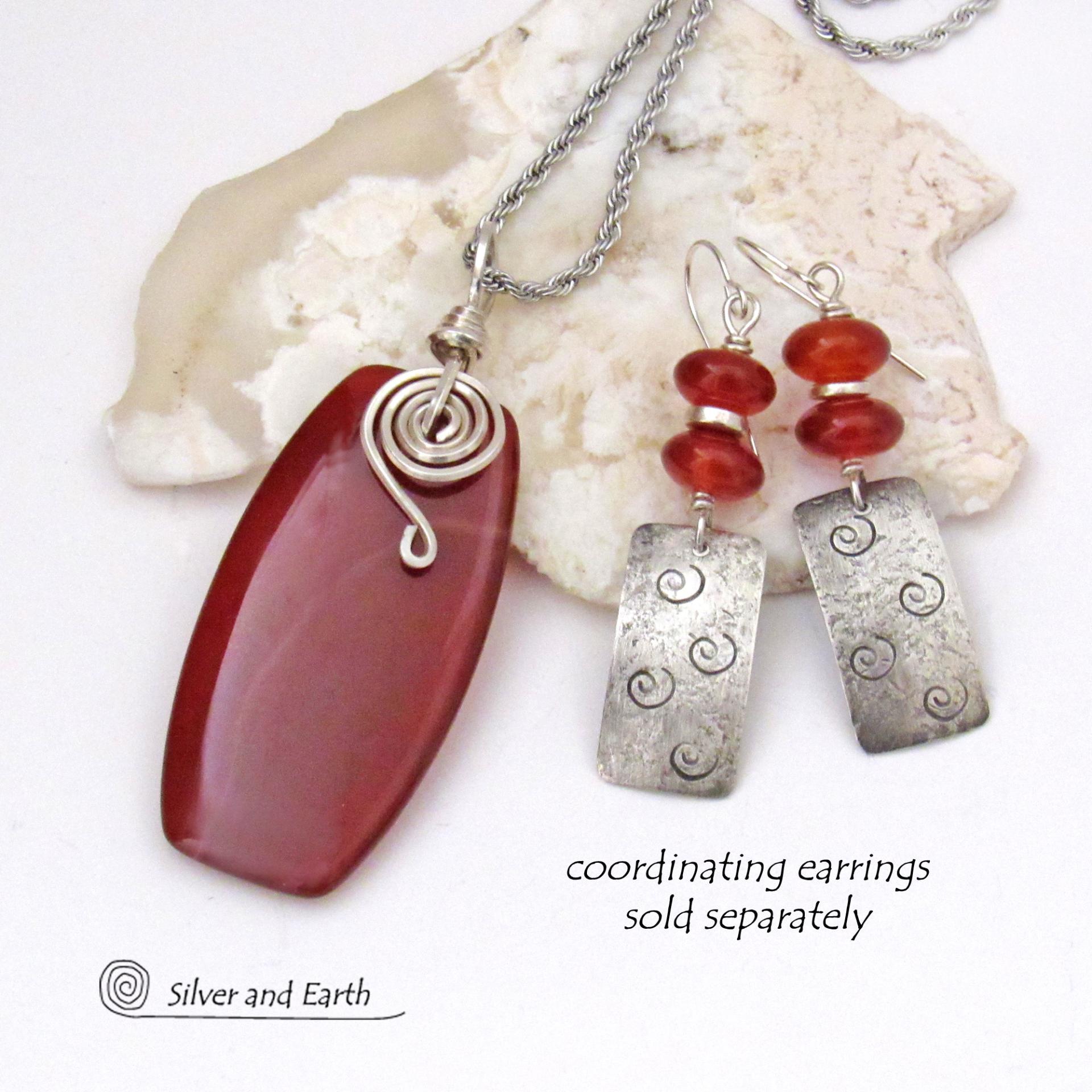 ► This necklace has coordinating earrings which are sold separately: https://www.silverandearth.com/product/sterling-silver-earrings-spiral-stamped-texture-and-rusty-orange-carnelian-gemstones