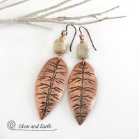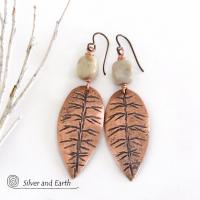 Copper Leaf Earrings with Agate Stones - Earthy Nature Jewelry